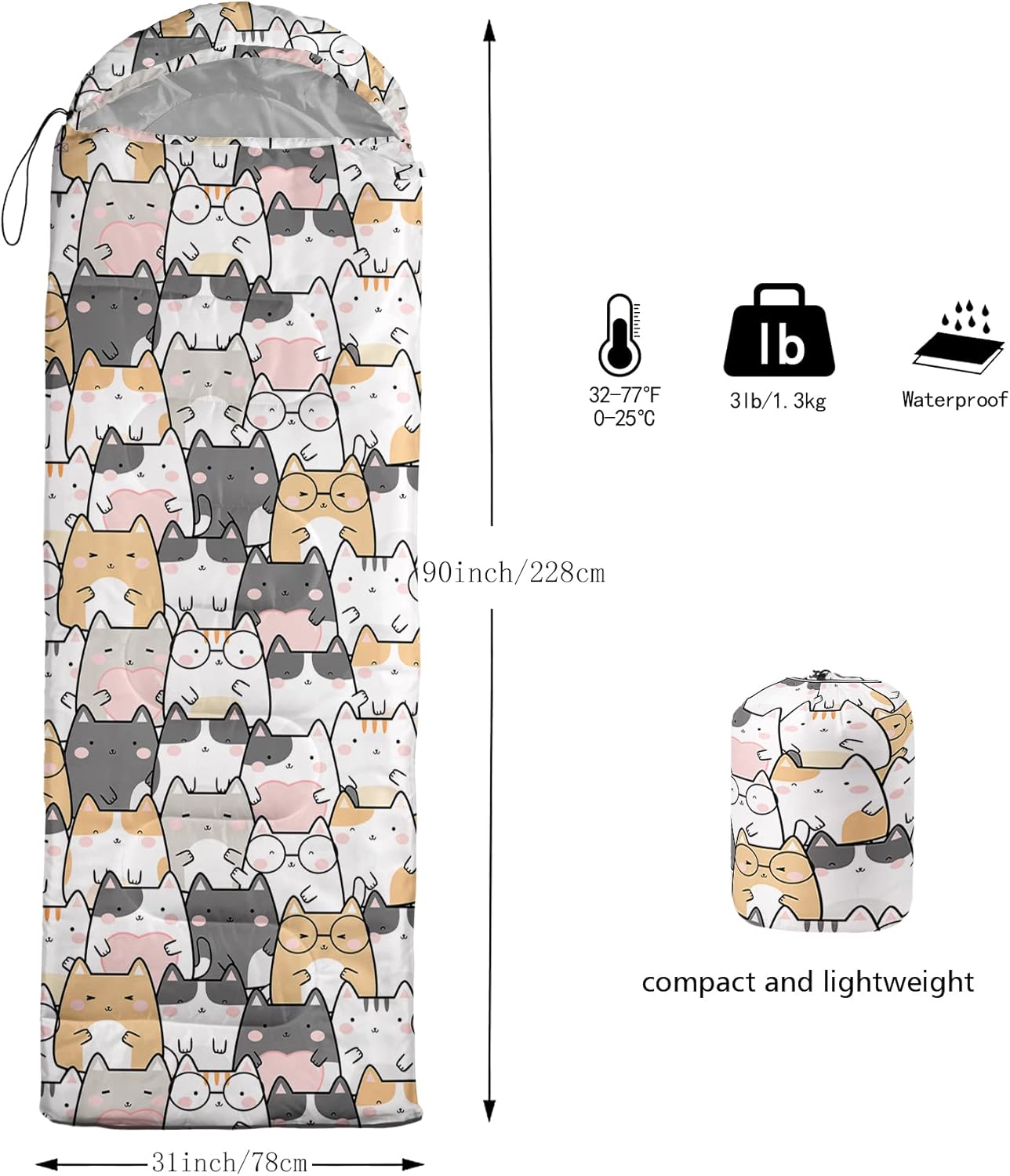 - FITS FOR 3 SEASONS: SIZE – 31 by 90 inches (W x D). Our sleeping bag can be used in 3 seasons with a design temperature of 32℉-77℉(0℃-25℃). These bags also have a weather resistant waterproof design to keep you warm and prevent you from any dampness.